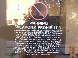 Kentucky law allows the University of Louisville to enact policy to control deadly weapons on campus. Students who are found in violation of this policy may be expelled. Faculty and staff may be fired. Others will be asked to remove either themselves or their weapon from the premises.