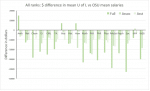 - Graph from the FSWG’s salary research showing the dollar difference between U of L and OSU for all ranks.