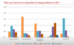 - Graph from a presentation on A&S morale and climate showing who faculty and staff hold responsible for certain issues.