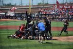 With one on and no outs in the final at bat, Taylor hawked down a ball in the out field that led him running into the wall. A strikeout and fly out ended the game.