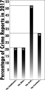 The Arch had the most theft and criminal mischief reported in 2017, while The Province led in assaults reported.