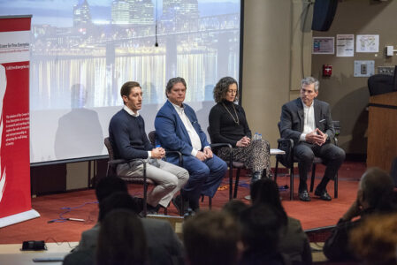 Members of the panel discuss the future of Louisville post-pandemic. Photo by Susan Harrison, Office of Communications and Marketing.