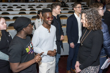 Event attendees interact with a member of the panel. Photo by Susan Harrison, Office of Communications and Marketing.
