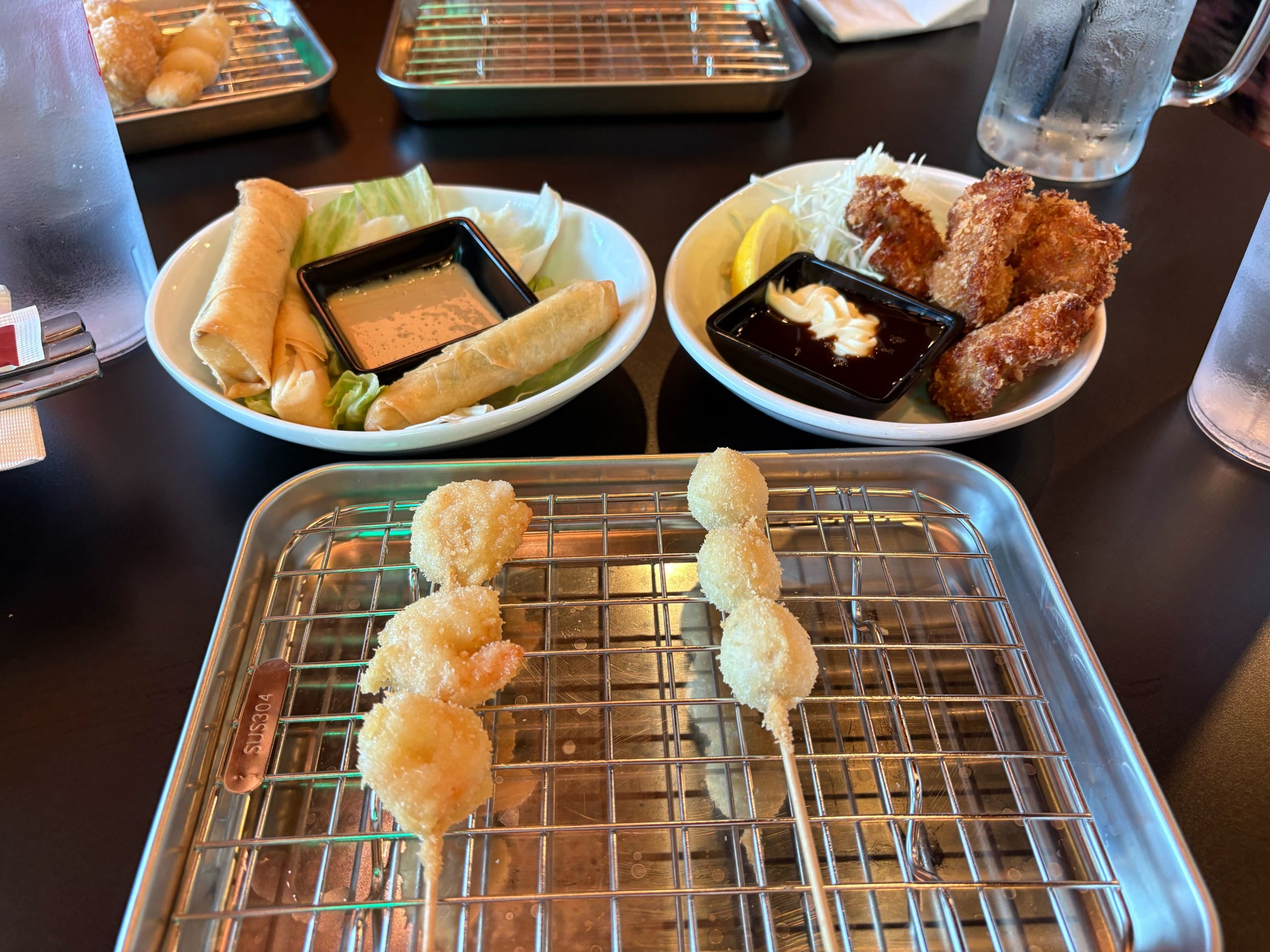 The cheese and shiso rollups, fried oysters and kushikatsu at HaiFry. (Photo by Roxy Osborne / The Louisville Cardinal)