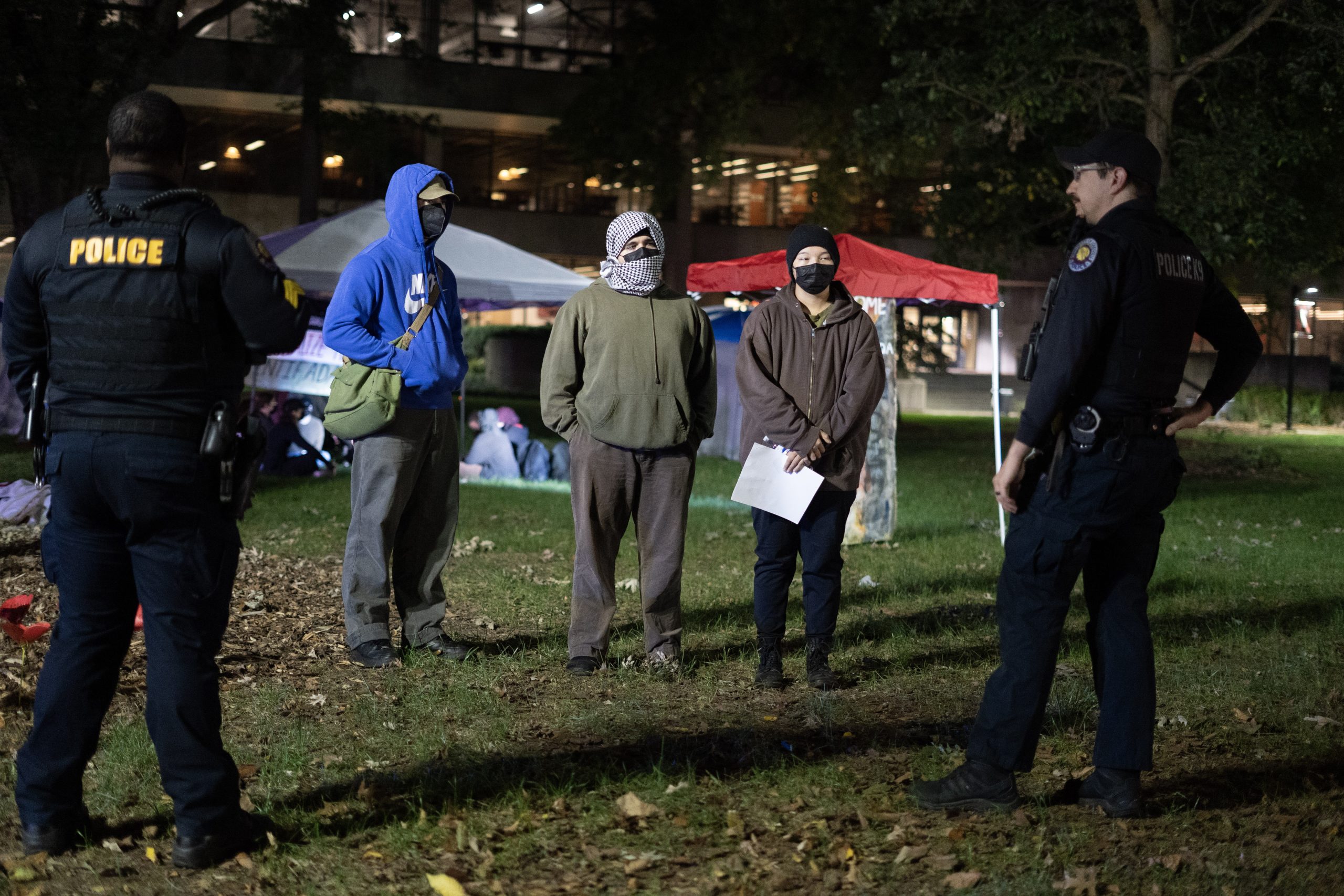 Around 20 University of Louisville students arrived at Ekstrom Library before sunrise on Oct. 13 with tents in hopes of establishing an encampment. The U of L Police Department put an end to this plan around 7 a.m., just an hour into its setup.