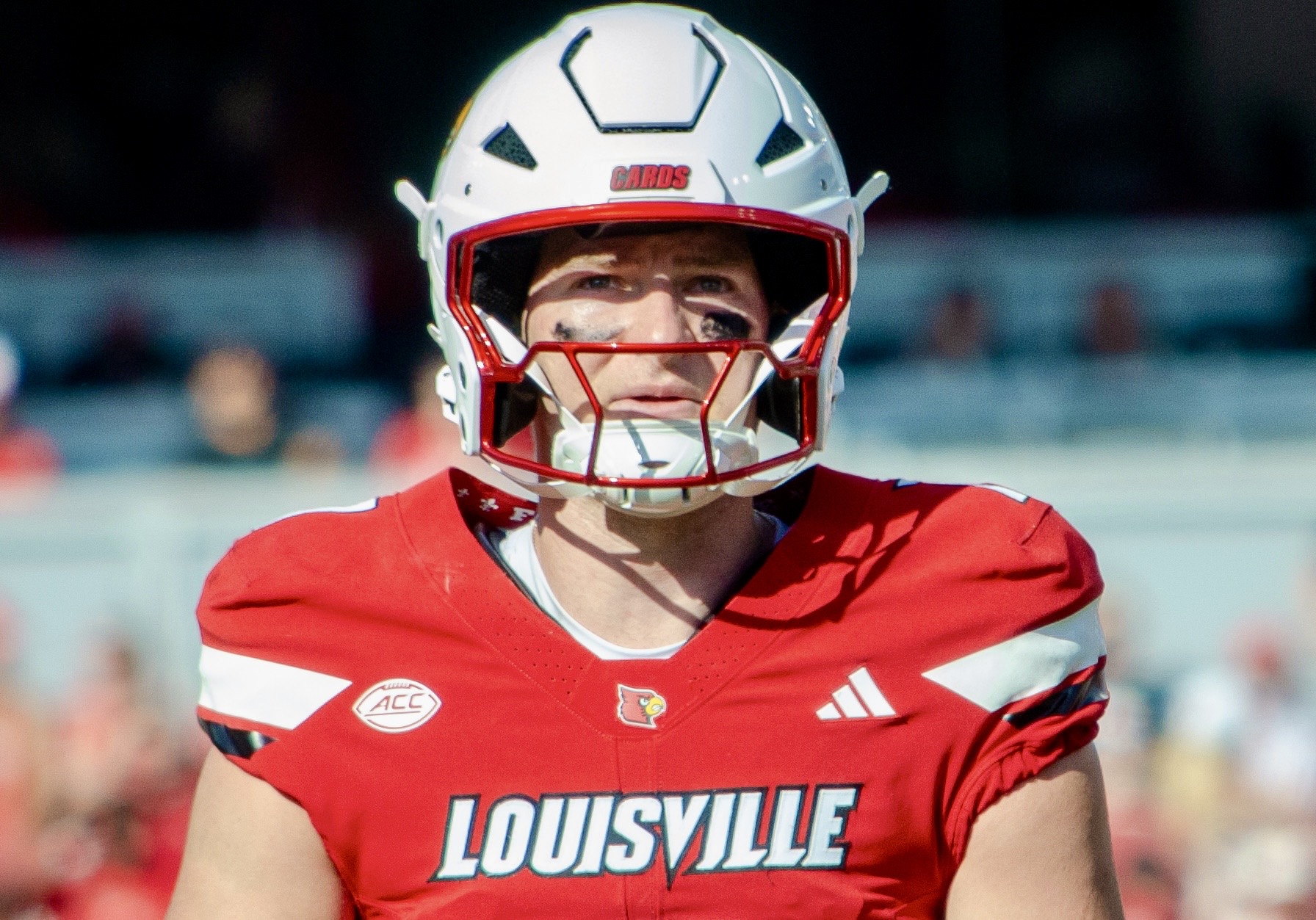Quarterback Miller Moss runs back to Louisville’s sideline after throwing a touchdown pass to Chris Bell. (Nolton Alfred/The Louisville Cardinal)