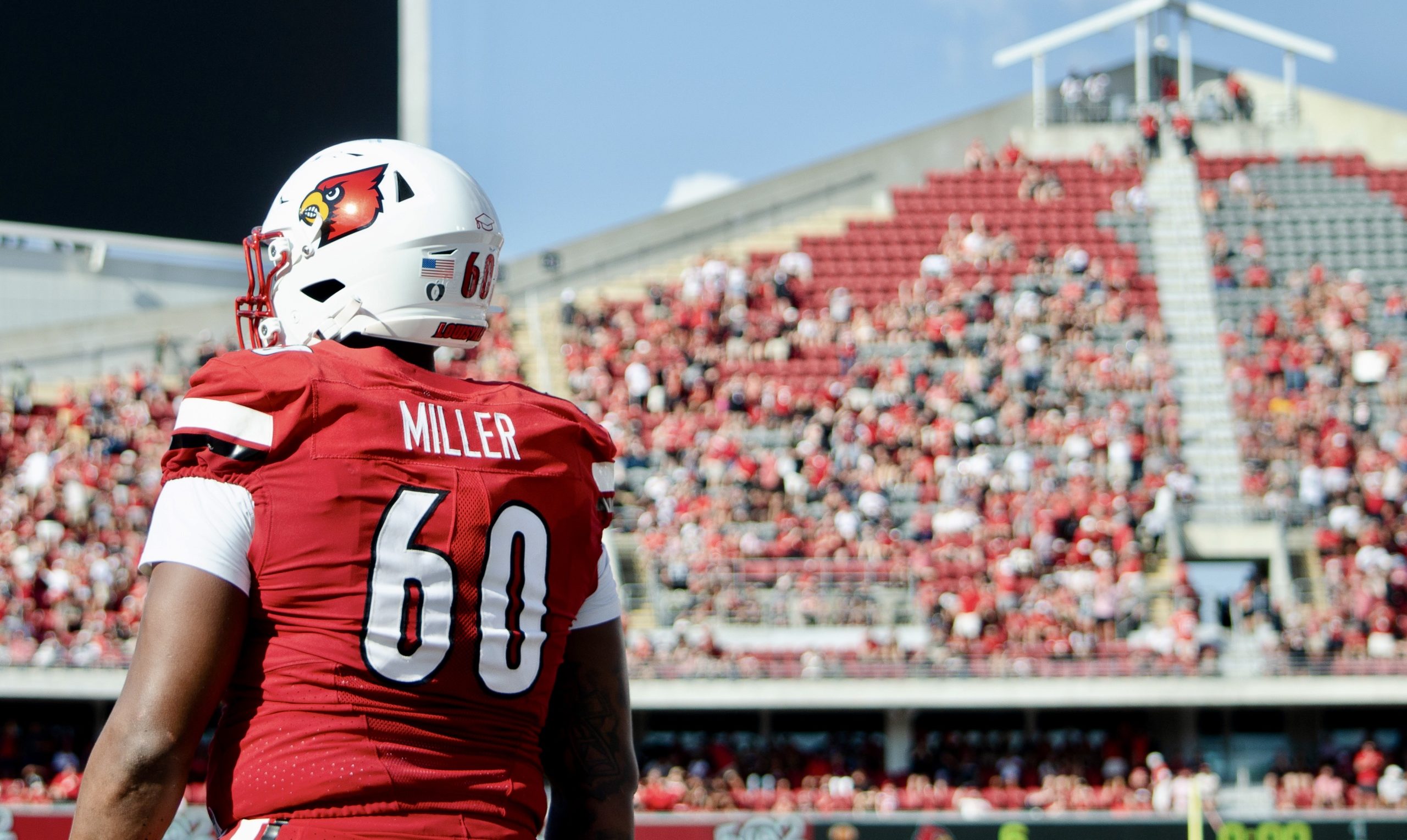 Louisville lineman Rasheed Miller stands in front of thousands of fans on every side. (Nolton Alfred/The Louisville Cardinal)