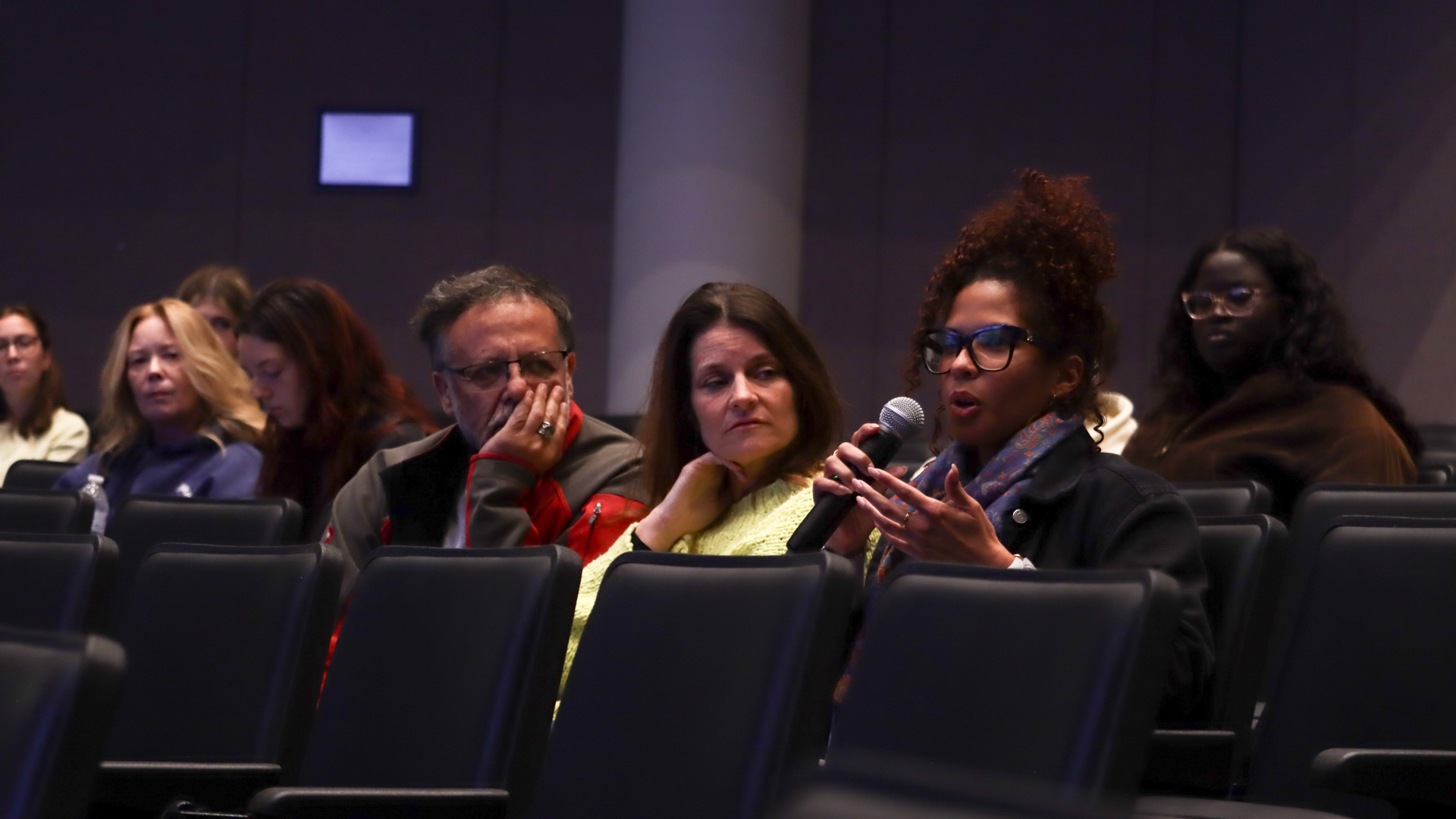 Professor Ibis Sierra Audivert shares her perspectives on poverty and identity in Latin America in a post-screening discussion on Oct. 23, 2025. (Photo by Sara Montoya / The Louisville Cardinal)
