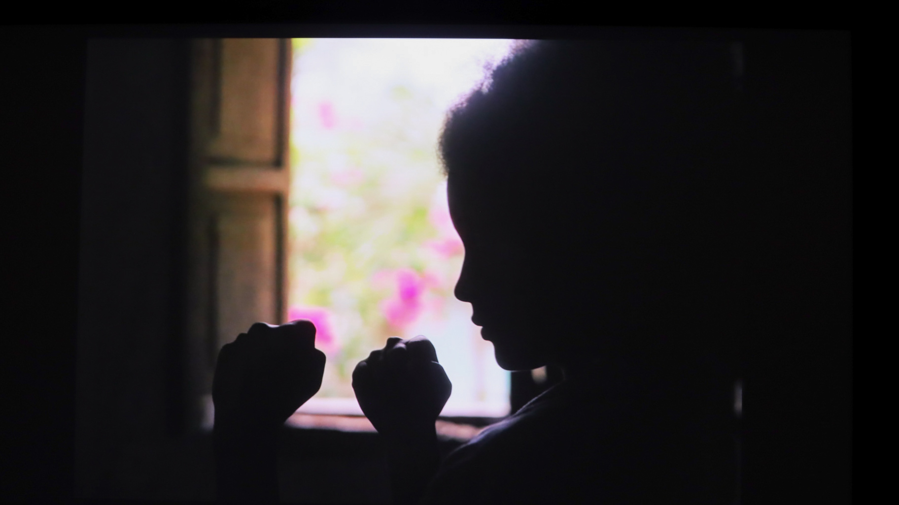 Laureana, the main character of La Suprema, practices boxing in her room. The film first screened at U of L’s Floyd Theater on Oct. 23, 2025. (Photo by Sara Montoya / The Louisville Cardinal)