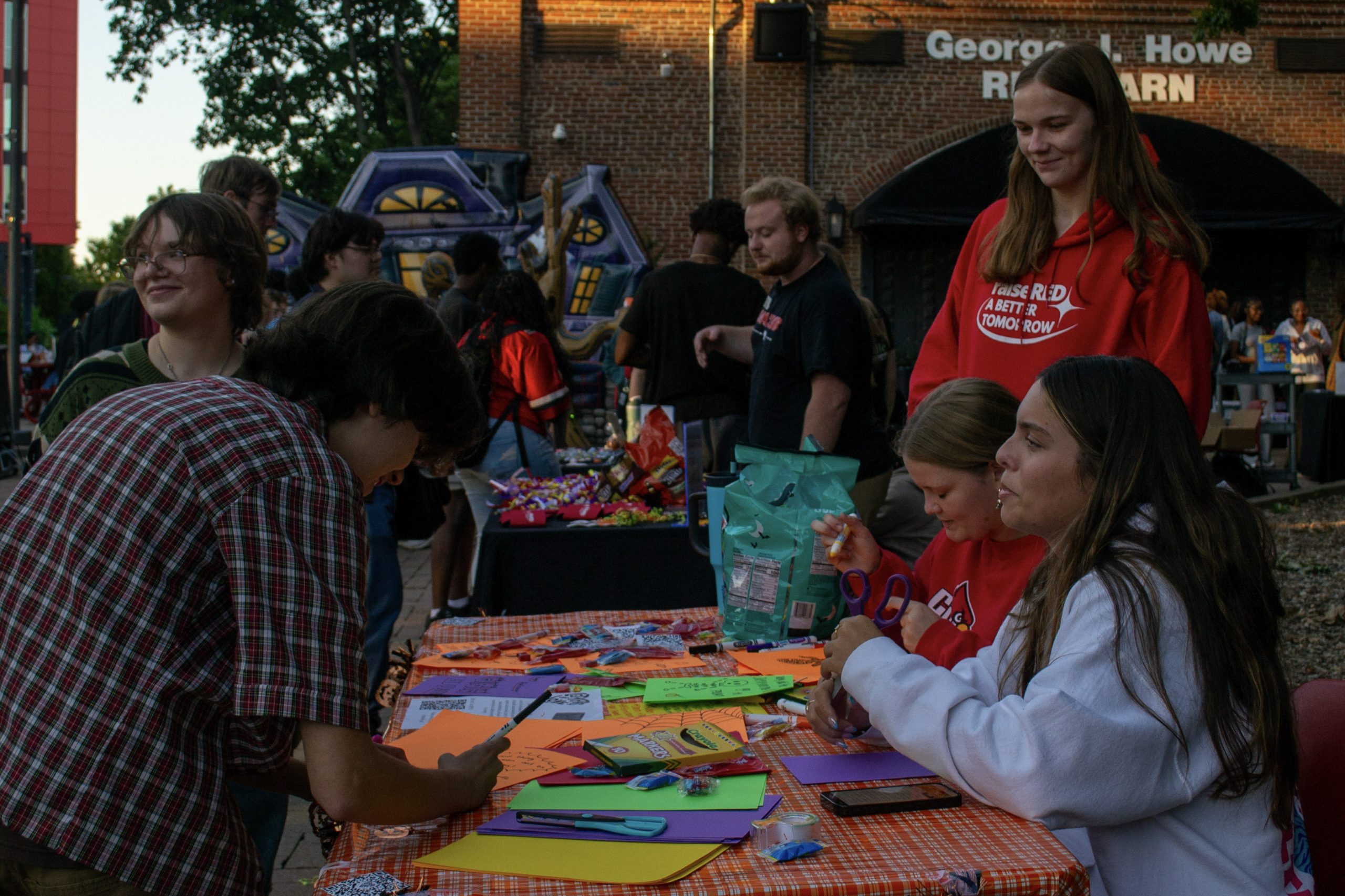 U of L students visit a card-making table set up by Letters of Love, Oct. 8, 2025. Letters of Love is a non-profit that provides emotional support to patients in children’s hospitals. (Photo by Mel Banta)