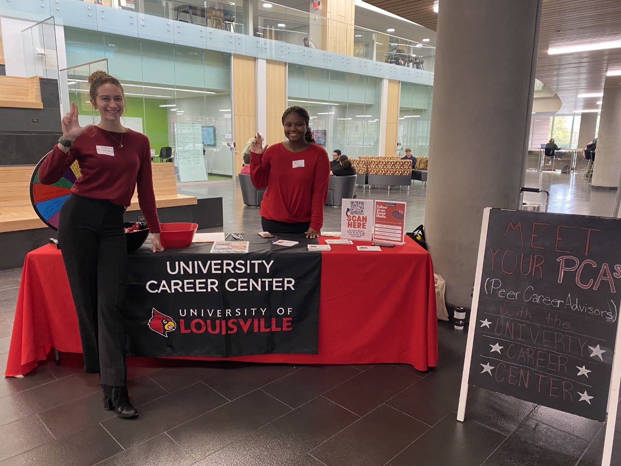 Peer Career Advisors table in the BAB. (Photo Beth Przybylski / The Louisville Cardinal)