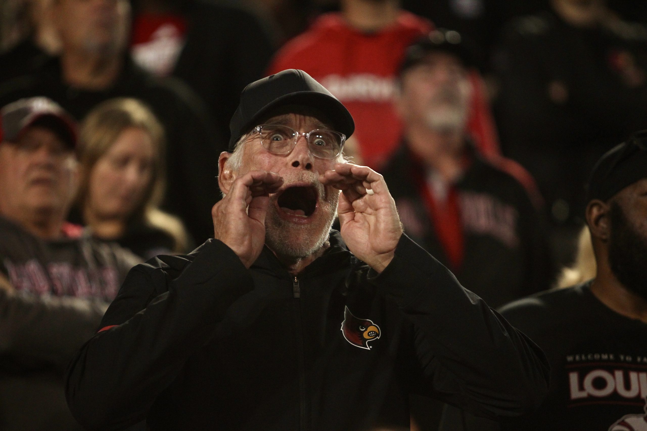 A frustrated U of L fan screams towards the field during a Nov. 14 Louisville football game against Clemson at L&N Federal Credit Union Stadium. (Vinny Porco / The Louisville Cardinal)