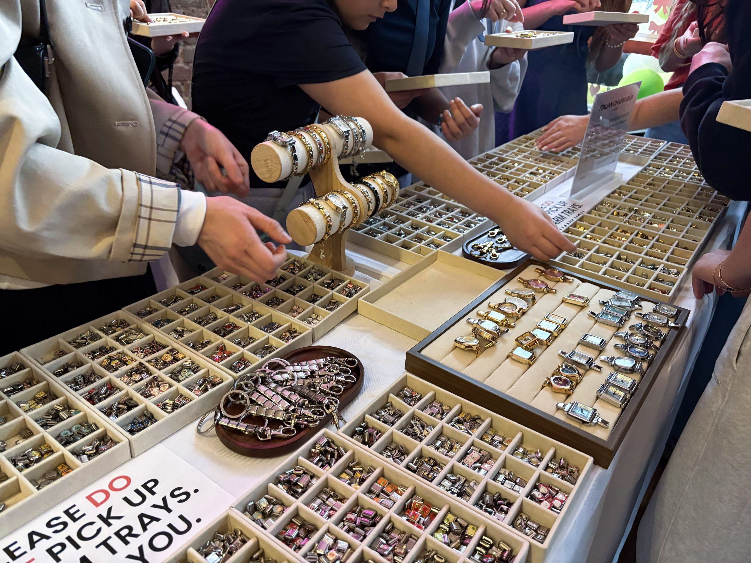 After receiving a bracelet outside the building, participants headed inside to a display of hundreds of different charms. Each bracelet is made from stainless steel.