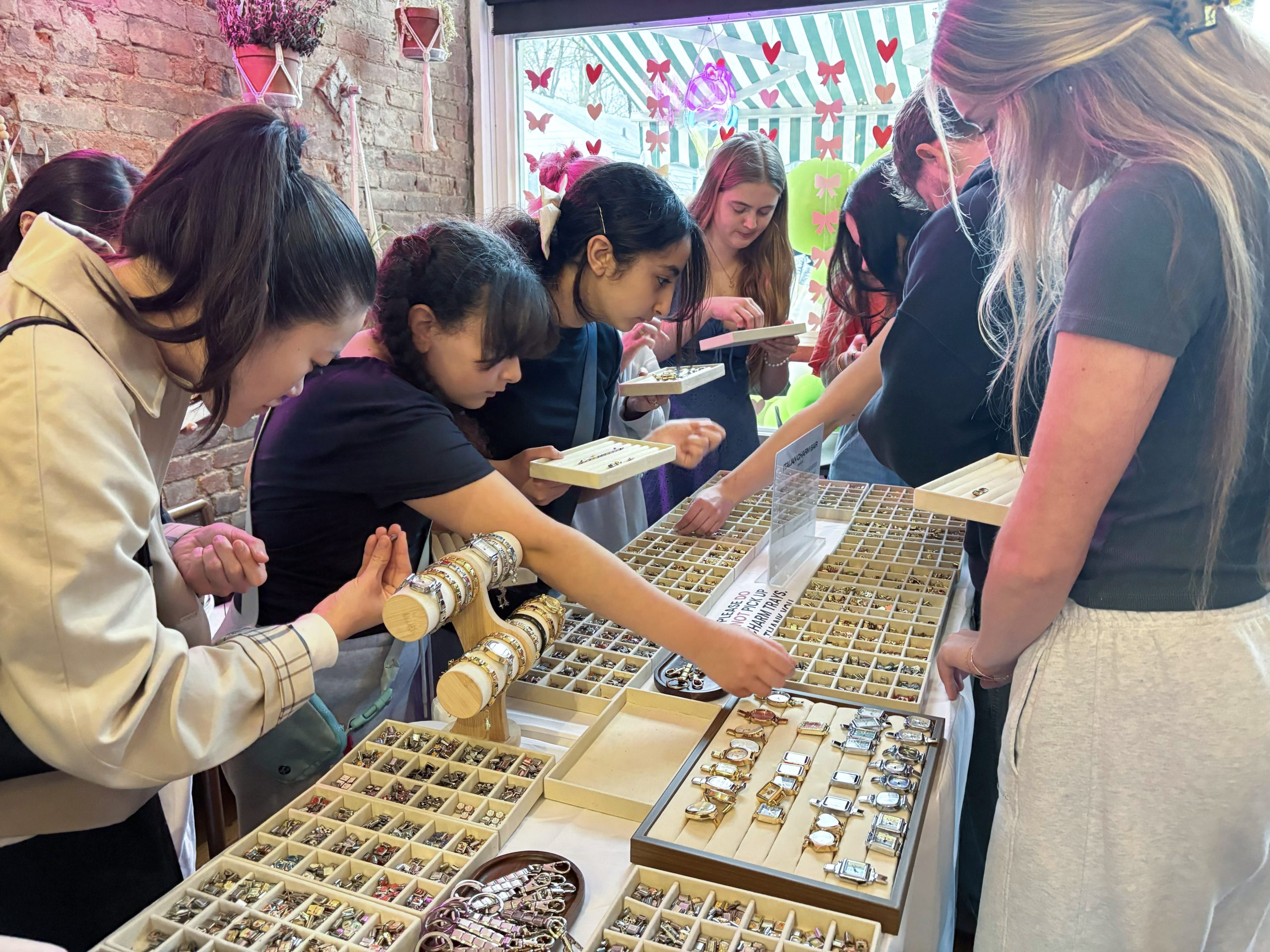 Event-goers assemble an Italian charm bracelet during Pochettely’s pop-up event at Phalcha Coffee, March 7, 2026. (Photo by Roxy Osborne / The Louisville Cardinal)