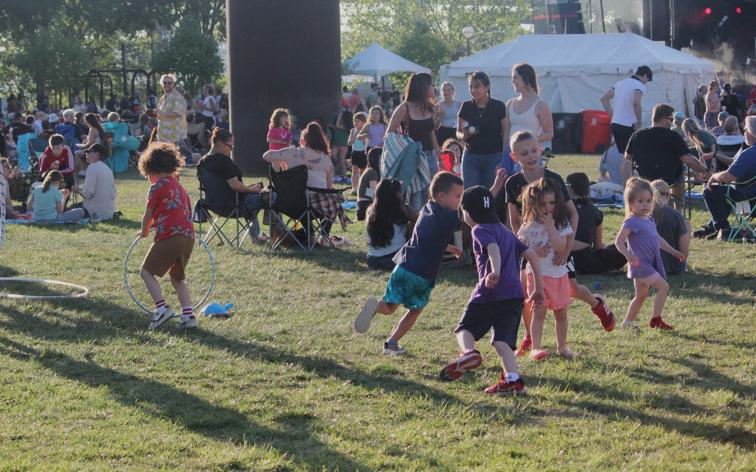 Children run and play on the Big Four Lawn at Waterfront Wednesday on April 22.