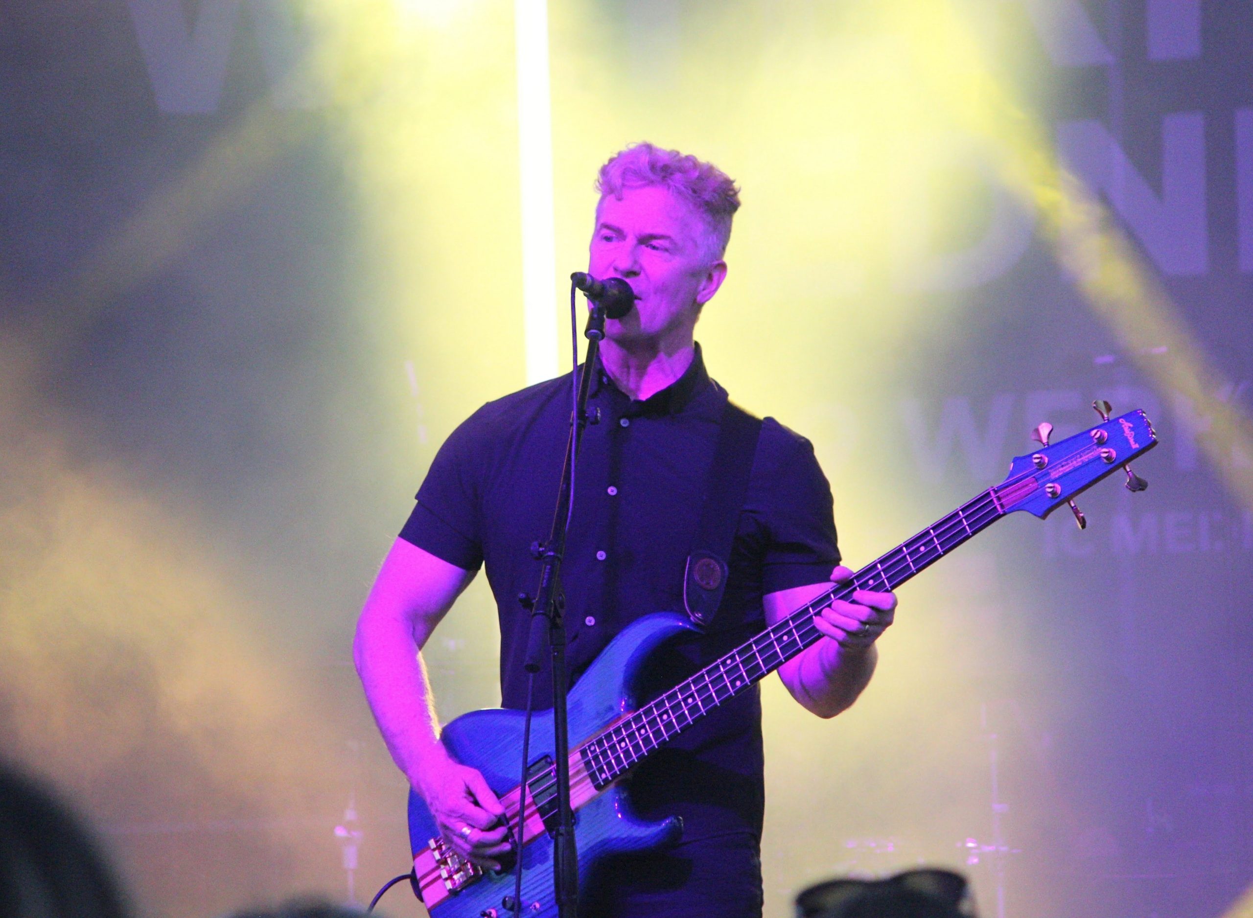 Todd Pipes plays the bass during Deep Blue Something’s set at Waterfront Wednesday on April 22, 2026. (Photo by Alex Woodard / The Louisville Cardinal)